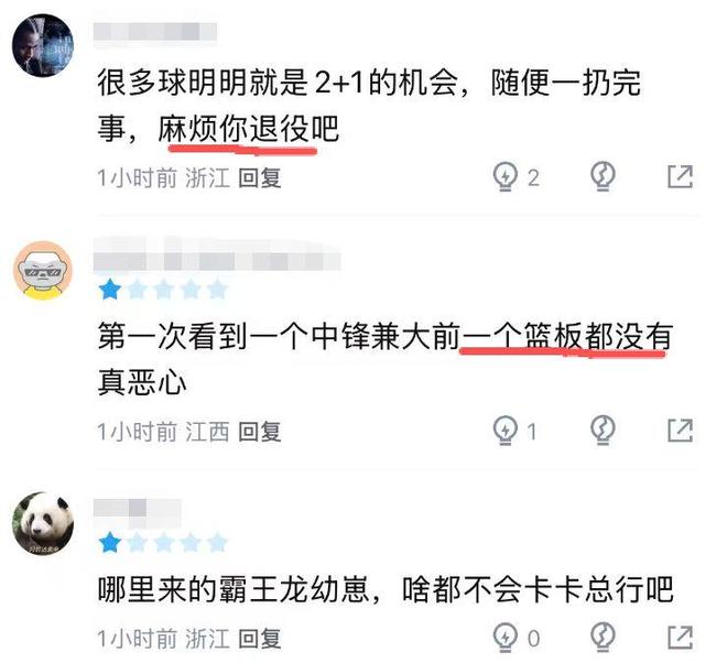 曾经作为一名灵活的摇摆内线,刘泽一在场上给人的感觉就是很灵性,甚至一度被称作浙江版追梦,但本赛季拿到顶薪后,刘泽一却选择躺平,在场上出工不出力,这确实令人感到唏嘘。不少球迷也感慨道:“顶薪?到29年?”、“很多球明明就是2+1的机会,随便一扔就完事,麻烦你退役吧。”